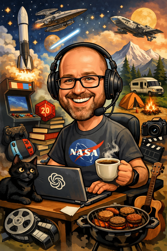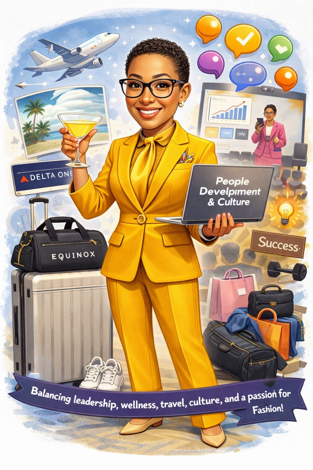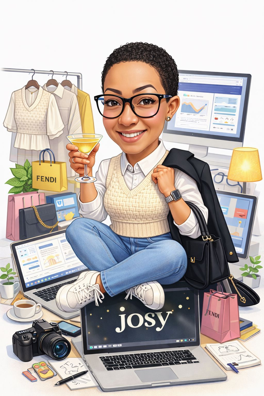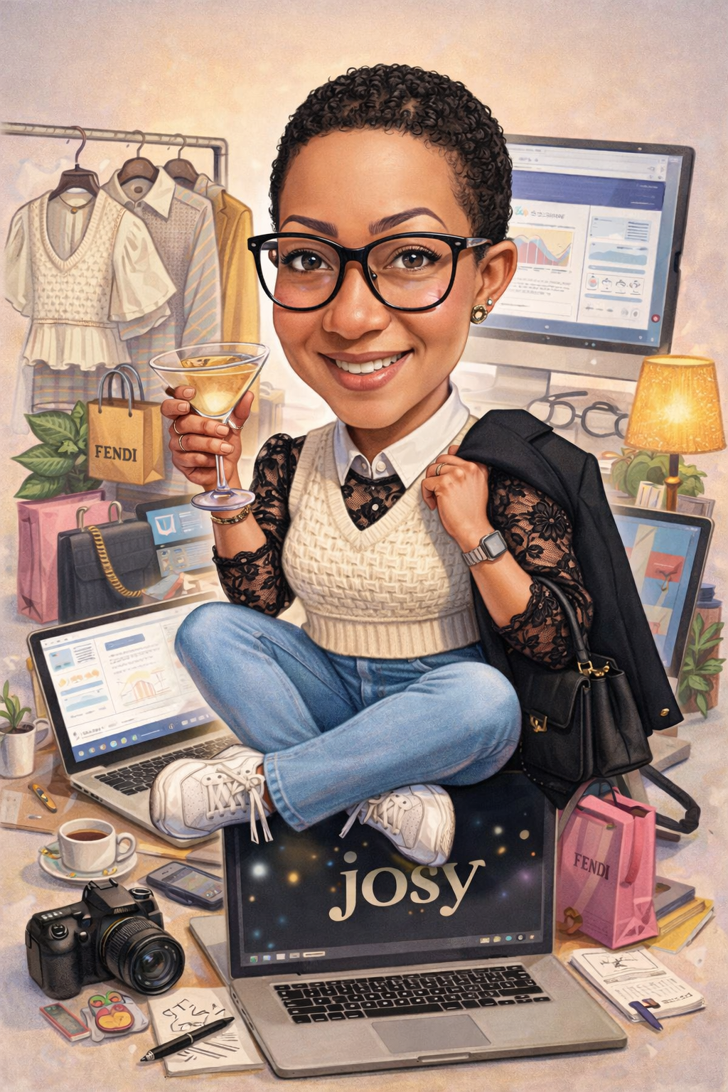 “Considering everything you know about me, create a caricature that reflects my personal life and career.”